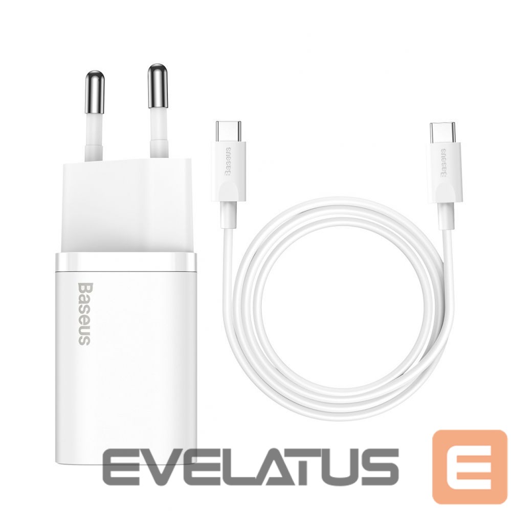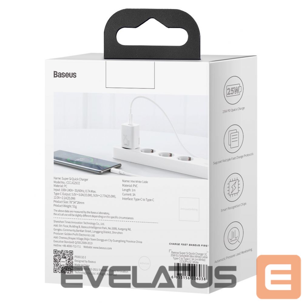 Baseus Si USB-C 25W 3A fast charger with USB-C / USB-C 1m cable – white