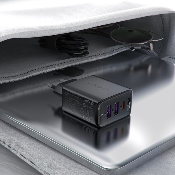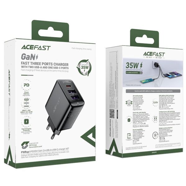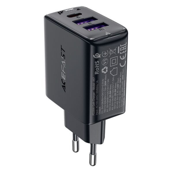 Acefast A57 charger with Power Delivery technology, USB-A and USB-C connectors, GaN technology, 35W, with 3 ports – black