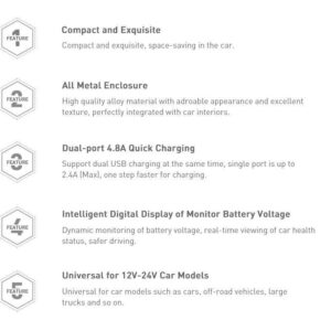 - Wide compatibility – The gadget is compatible with standard cigarette lighter sockets found in 99% of the most popular car models .