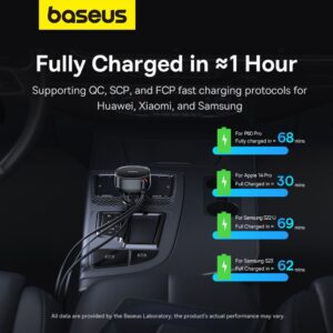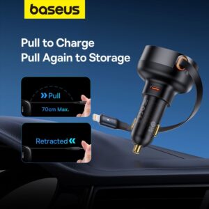 - Compact size – The Baseus Enjoyment Pro charger was designed with travel convenience in mind. Its small size means it can easily fit into any glove compartment or pocket, always being at hand when you need it.