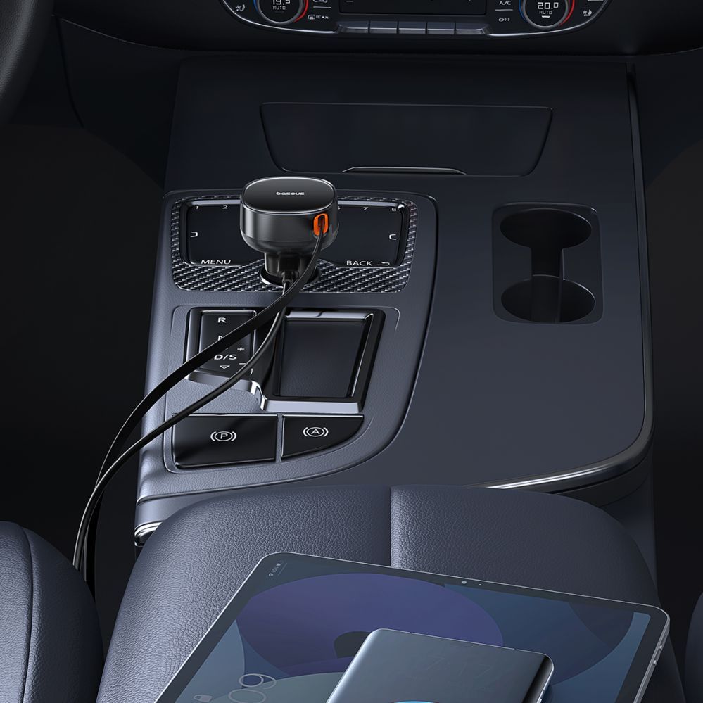 Turn your everyday car trip into an elegant experience with the black Baseus Enjoyment Pro charger, which will not only meet your charging needs, but also complement the style of your vehicle's interior.
