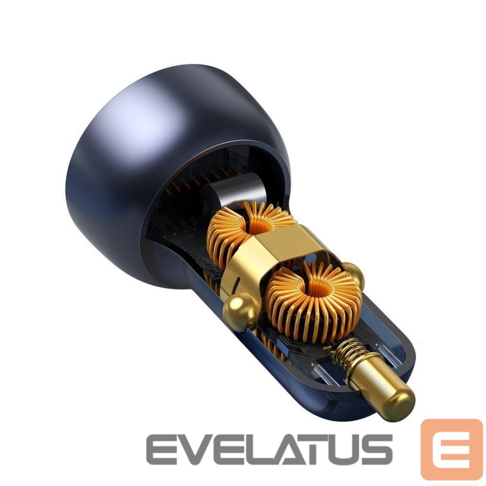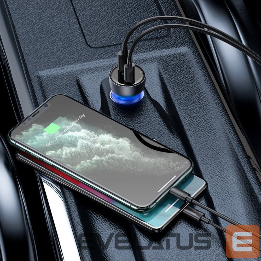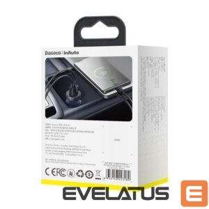 For fast charging of two different devices at the same time, the Baseus brand has designed a car charger. It is compatible with all modern models of cars and trucks with a voltage of 12 to 24V. Thanks to the appropriate design and size, it fits into all sockets – it remains firmly connected even when driving over bumps or speed bumps.