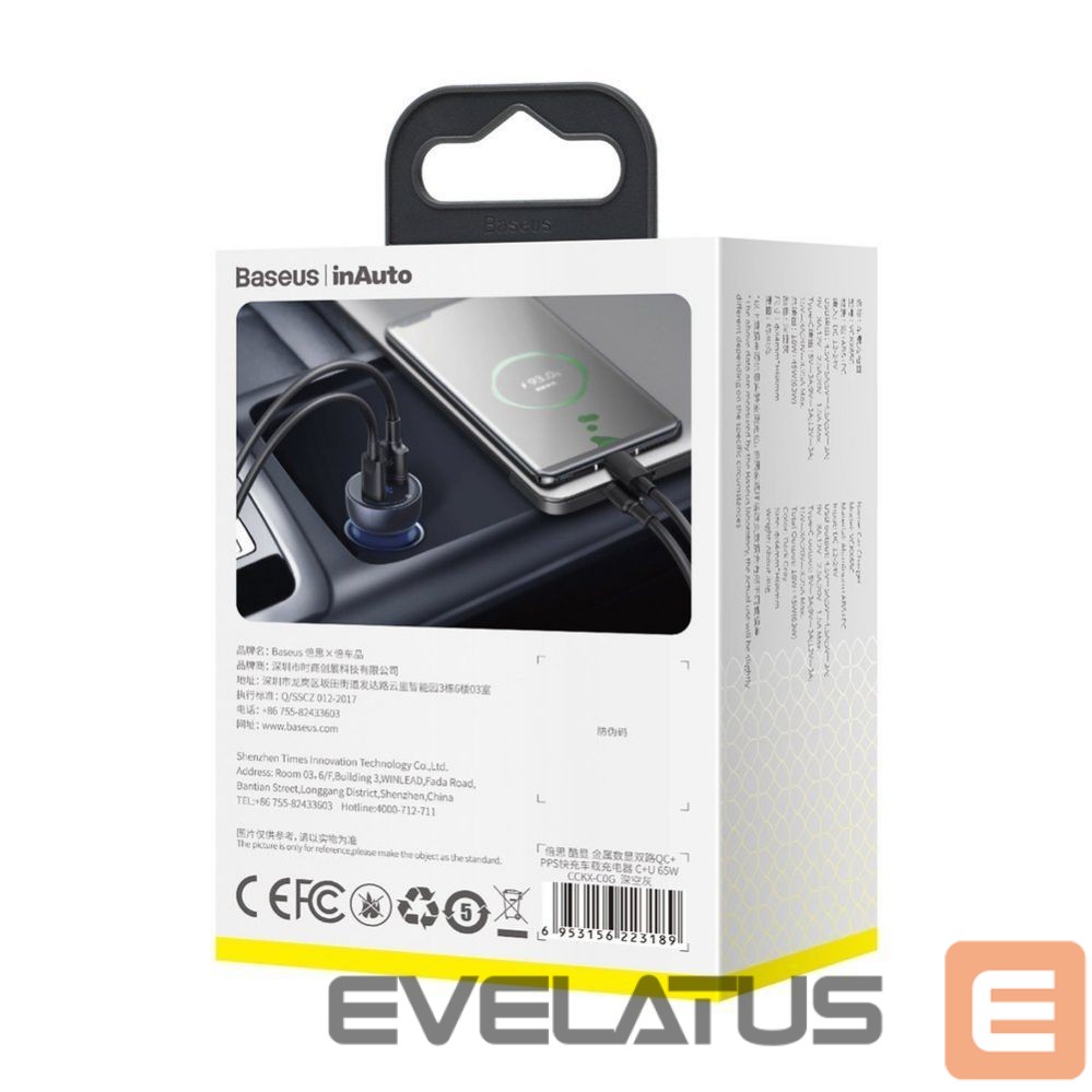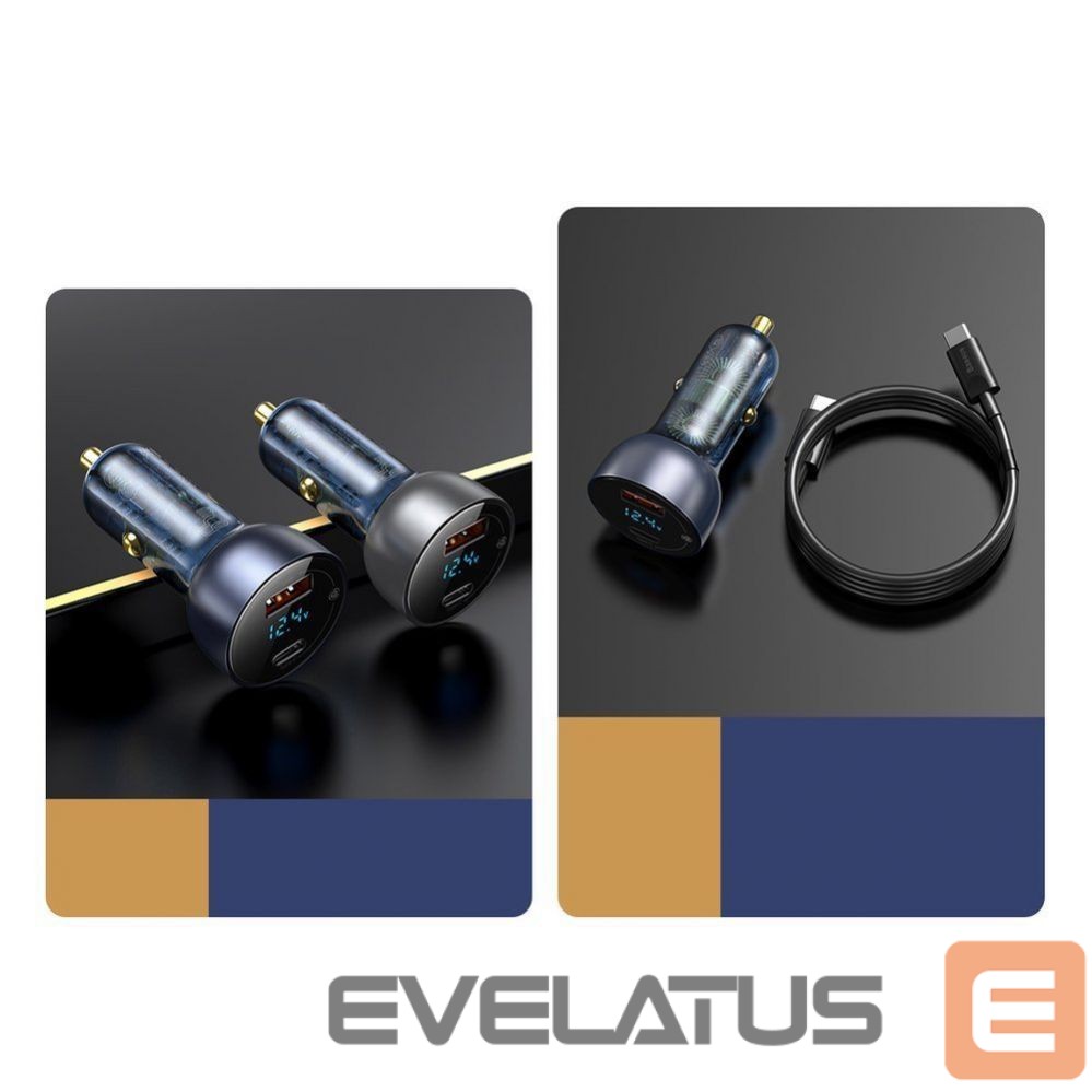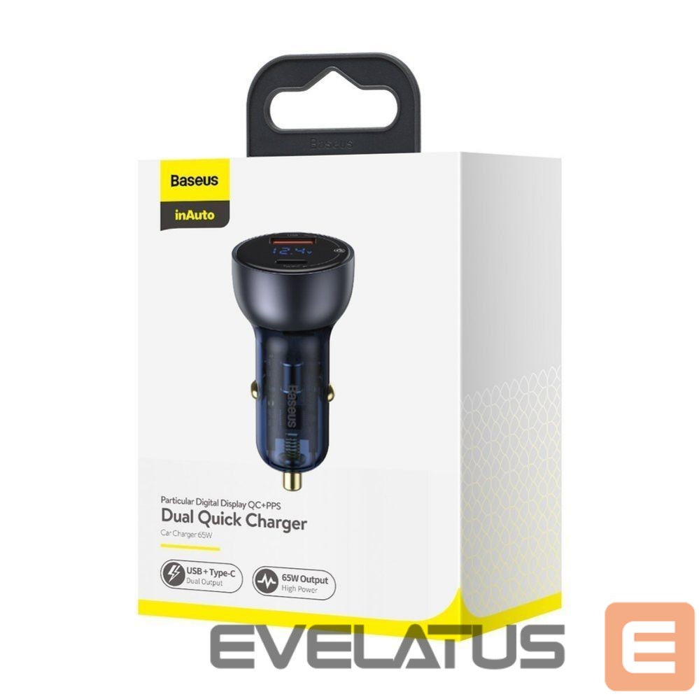 Adaptrid Baseus Baseus USB / USB Type C car charger 65 W 5 A SCP Quick Charge 4.0+ Power Delivery 3.0 LCD screen gray (CCKX-C0G)