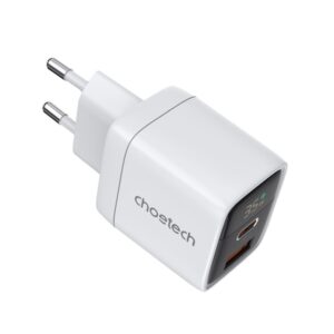 The Choetech PD6052 mains charger operates with a power of up to 35 W and allows you to charge two devices at the same time. It is equipped with USB-C and USB-A ports. It has a display that shows the power of the charger in real time. GaN technology guarantees efficient charging. The Choetech PD6052 charger has protection against overheating, overvoltage, overload or short circuit.
