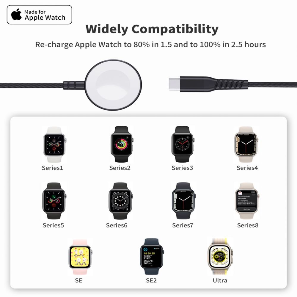 Choetech T319 MFI 5W wireless charger for Apple Watch + USB-C cable – black