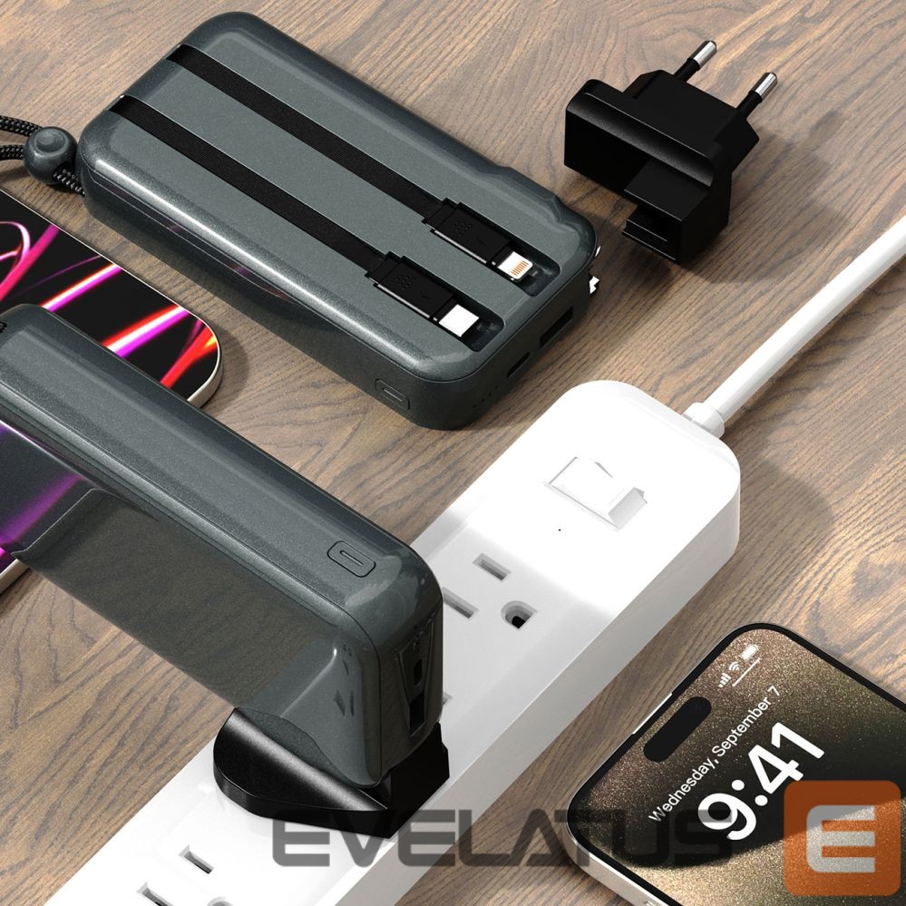 The Dudao K25 charger has built-in USB-C and Lightning cables, so you don't have to take extra cables with you. This is a convenient solution that saves space in your bag and means you always have the right cable to charge your device at hand. No need to search for the right cables in your suitcase!
