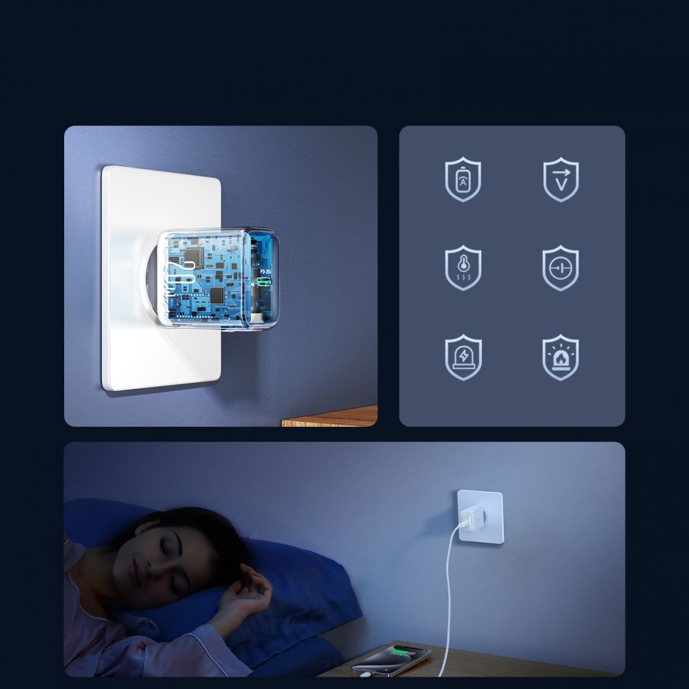 The Joyroom JR-TCF20 charger offers full protection for your devices thanks to a six-point security system. It protects against overload, overvoltage, overheating, short circuit and static electricity, ensuring complete safety while charging. You can be sure that your devices are in the best hands.
