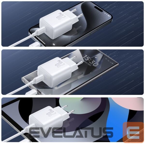 Speed and security charging – Joyroom JR-TCF20 mains charger is second to none. Not only does it meet the latest iPhone power requirements, but it also offers universal compatibility with multiple devices: from phones to tablets. Thanks to support for Power Delivery and Quick Charge 3.0 protocols, you can enjoy extremely fast charging, up to four times faster than standard chargers. Moreover, six-point protection ensures complete safety of your devices. The set includes a 1 m USB-C / USB-C cable.