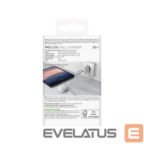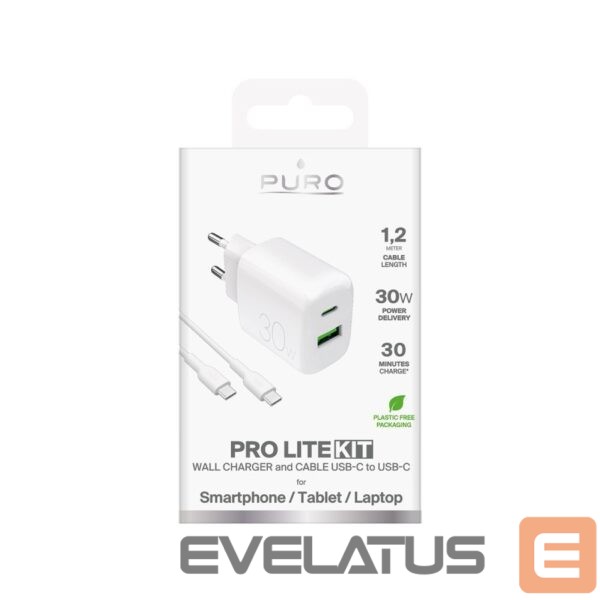 Puro PROLITE 30W USB-A / USB-C wall charger + USB-C – USB-C cable 1.2m – white