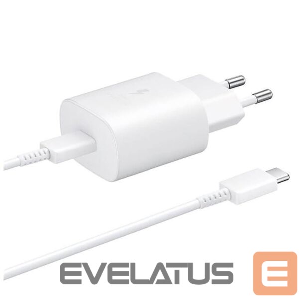Samsung 25W EP-TA800EWE USB-C Wall Charger with Samsung EP-DA705BWE USB-C / USB-C Cable – White