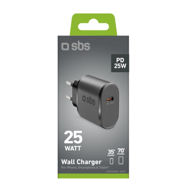 The SBS TETR1CPD25 charger allows you to charge your smartphone in just 35 minutes and your tablet in 70 minutes, so you save time and can focus on important tasks.