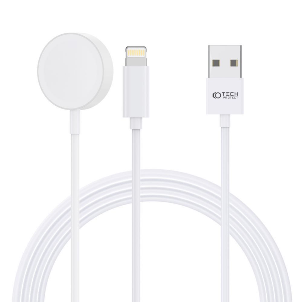 Adaptrid Tech-Protect Tech-Protect UltraBoost 2in1 Magnetic Charger with USB-C / Lightning Cables for Apple Watch 1.5m – White