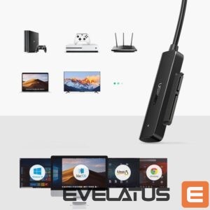 Ugreen brand adapter with USB 3.2 Gen 1 connector for connecting HDD and SSD drives (only 2.5'') with SATA interface to the computer. The latest generation integrated circuit supporting USB 3.2 Gen 1 technology is a guarantee of super fast data transfer, reliability and security of your equipment. No drivers are needed to use this adapter, it works on the Plug&Play principle.