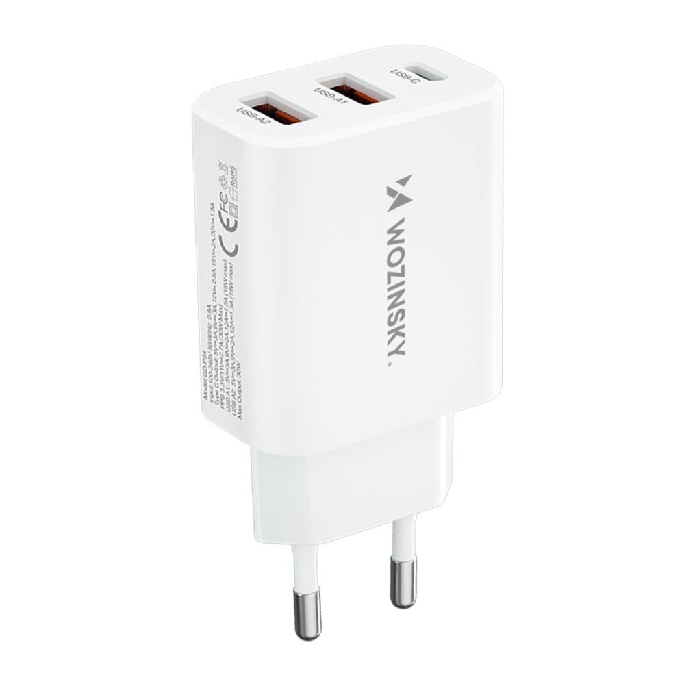 Adaptrid Wozinsky Wozinsky CWCUCW 30W USB-C / 2 x USB-A wall charger – white