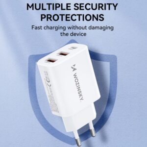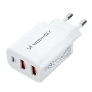 The Wozinsky CWCUCW wall charger is an irreplaceable tool and an ideal choice for both home use and travel. Ensures fast and effective charging of various devices. Thanks to three output ports – one USB-C and two USB-A – you can charge your phone, smartwatch or headphones at the same time, which is invaluable when time is of the essence. Safety of use is guaranteed by built-in protections, including overcurrent and overvoltage. The durable PC and ABS housing protects the charger against mechanical damage.