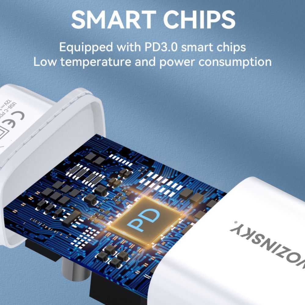 The modern USB-C standard in the Wozinsky WGWCCW charger guarantees wide compatibility with a variety of devices. The USB-C port fits most new smartphone and tablet models, eliminating the need for multiple different chargers.