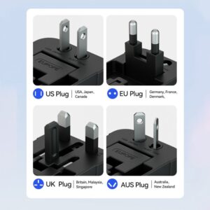 The Wozinsky WUTWC travel adapter is the perfect solution for people who frequently travel internationally. Thanks to integrated connectors for EU, US, AUS, and UK standards, it allows you to use electricity on different continents (North America, Europe, Asia or Australia), without the need for many different adapters. This eliminates the need to buy new adapters or rent them in hotels.