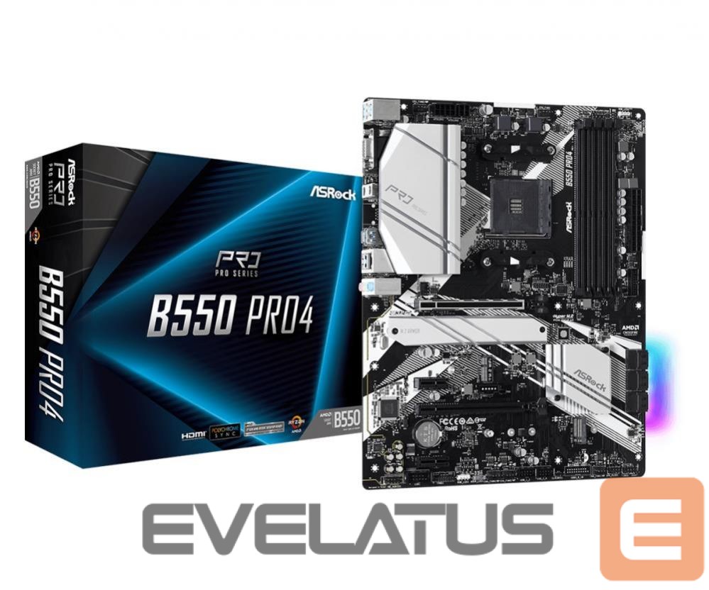 AMD protsessori emaplaat Asrock Mainboard||AMD B550|SAM4|ATX|2xPCI-Express 3.0 1x|1xPCI-Express 3.0 16x|2xM.2|1xPCI-Express 4.0 16x|Memory DDR4|Memory slots 4|1x15pin D-sub|1xHDMI|1xUSB type C|5xUSB 3.2|1xPS/2|1xRJ45|3xAudio port|B550PRO4