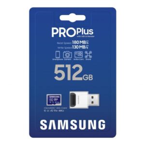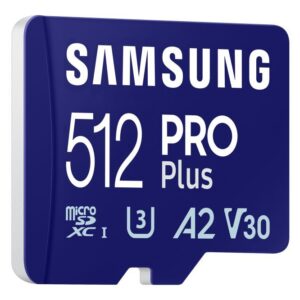 SAMSUNG PRO Plus microSD 512GB Up to 180MB/s Read and 130MB/s Write speed with Class 10 4K UHD incl. Card reader 2023