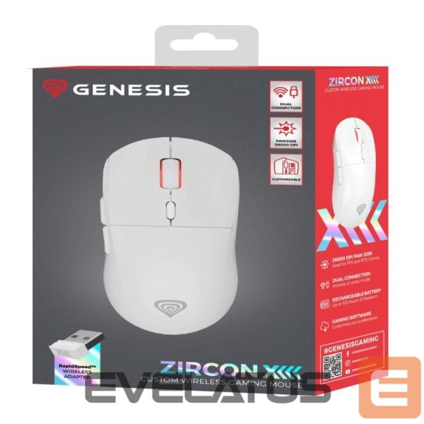 Arvutihiir Genesis Zircon XIII Custom | Wireless | Gaming Mouse | 2.4 GHz, USB | White