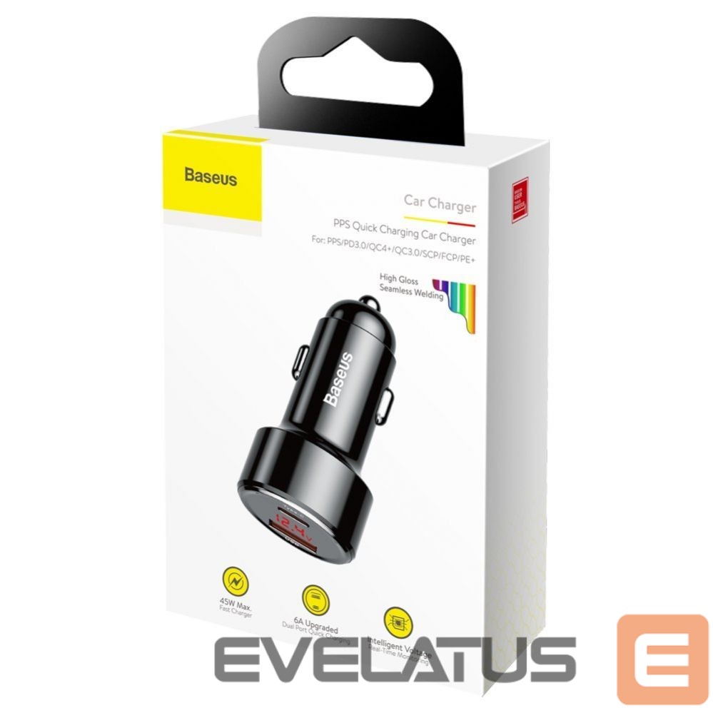 Baseus Magic Series PPS car charger with USB-C and USB-A ports with power up to 45W with fast charging protocols – black