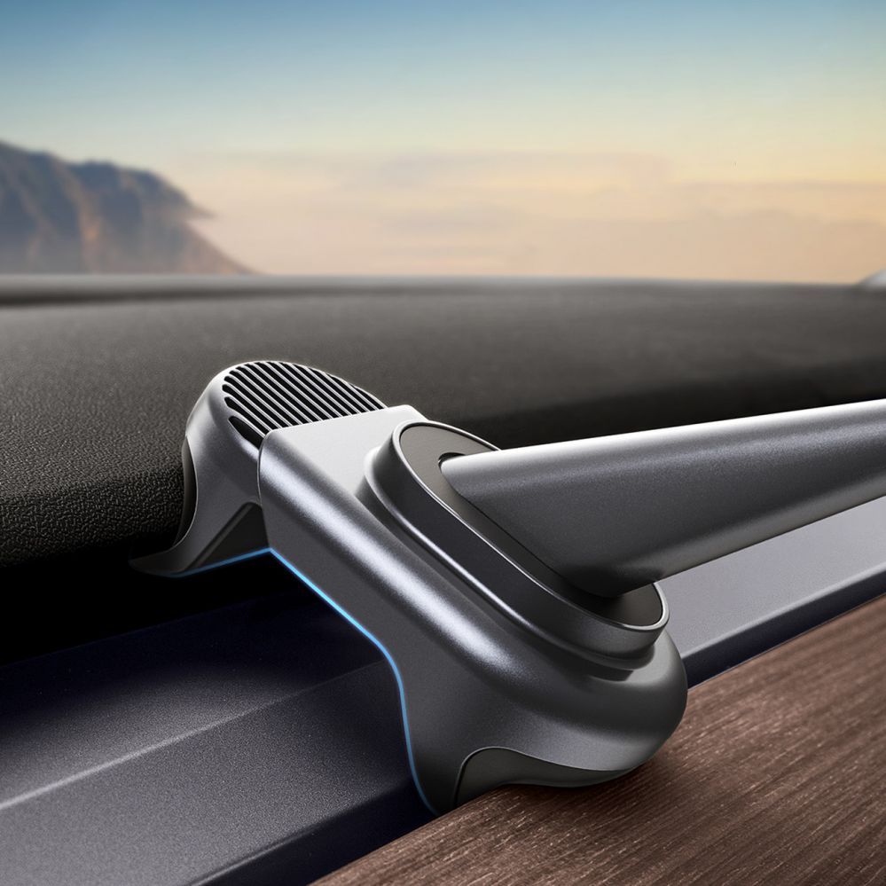 The Baseus car phone holder is an accessory for anyone who uses a phone, GPS navigation and a headset while traveling by car! You can place the holder in the cockpit of Tesla Model 3 or Tesla Model Y. In addition, the "arms" of the holder and the head are covered with a soft-touch, strong rubber, thanks to which they hold the phone stably during the journey. All this is possible without the use of any wires – this model is equipped with solar panels made of monocrystalline silicon – so it is powered by solar energy. So it will be perfect for the latest phones with large screens. The holder does not limit visibility while driving – unlike other models mounted on the windshield.