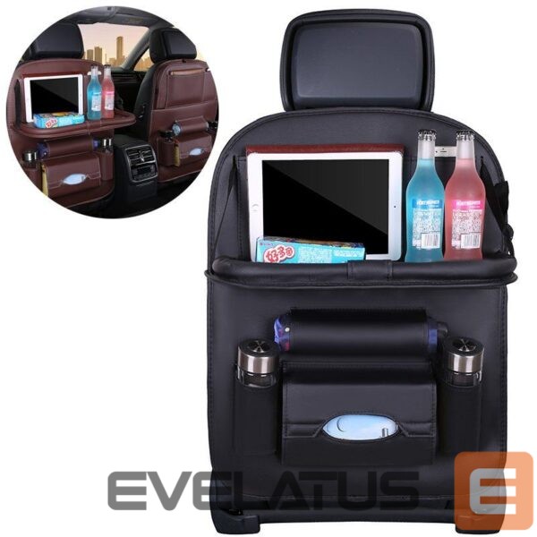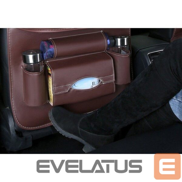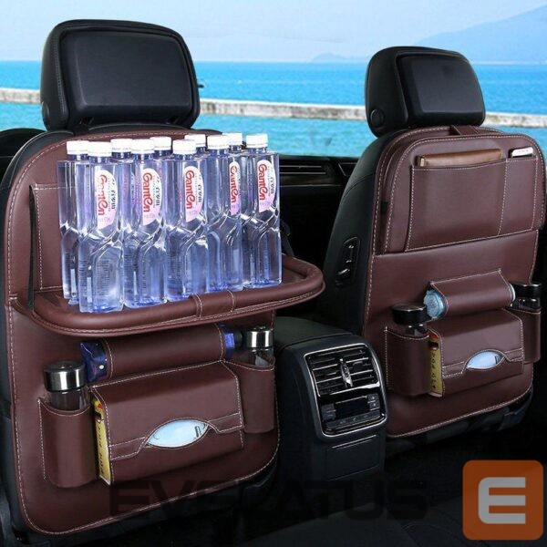 The organizer is made of durable, waterproof material that is not damaged or soaked. You can easily clean it with a damp cloth, because the eco-leather does not absorb dirt. But that's not all. The shelf, which you can use in two positions, can hold up to 15 kg. Thanks to this, you can place anything you want on it, such as drinks that are essential on the trip.