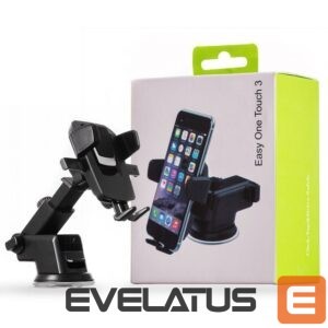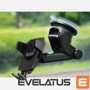 Universal car phone holder with long, telescopic arm that extends from 11,8 to 16,5 cm. Made of high-quality materials (PC + silicon) mount could be attached either to dashboard or windshield. Designed for smartphones with 5,5 to 8,5 cm width. Also, the accessory has one touch mounting system that locks and releases the device with just a push of a finger. Fully adjustable with 360 rotation allows you set it at perfect viewing position so it will not block your sight while driving.