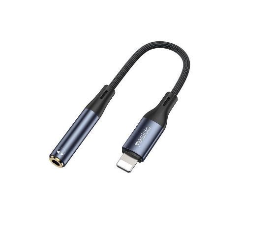 Helikaabel yesido YAU37 Lightning Port Aluminum Alloy Nylon Audio Adapter Cable |Lightning To 3.5mm Adapter For Iphone Black