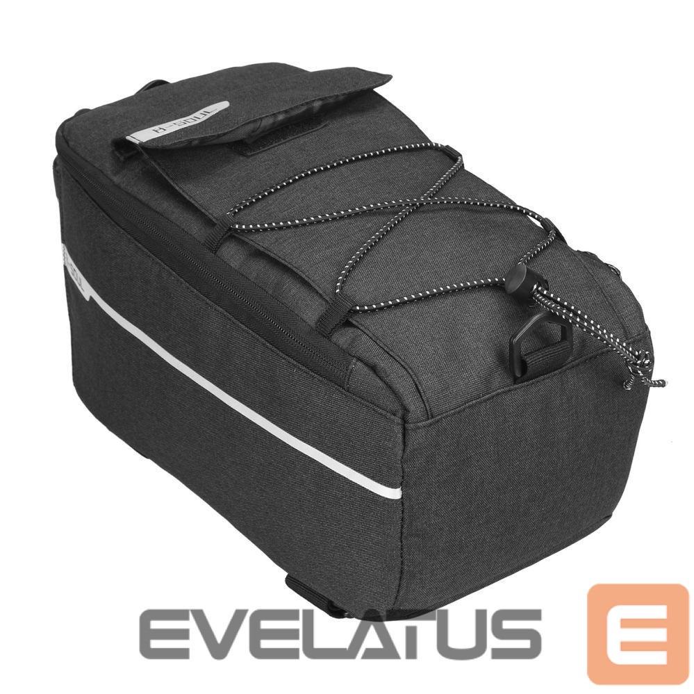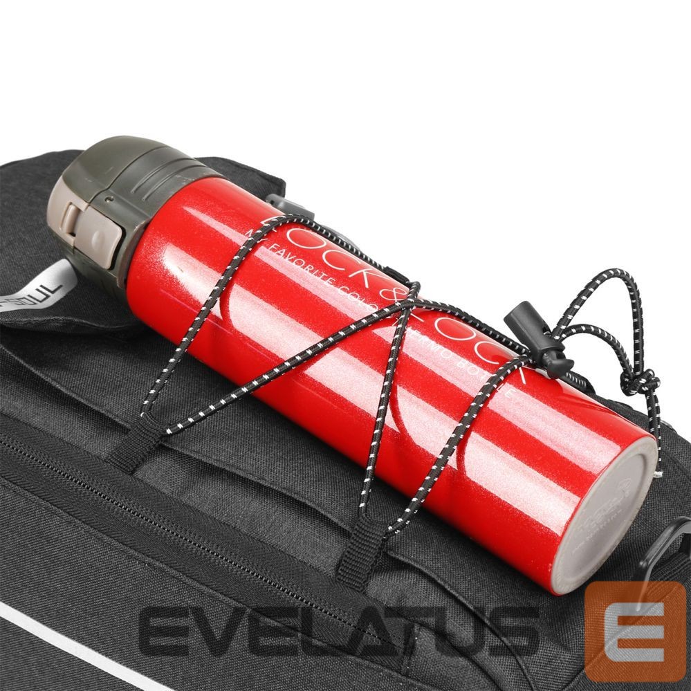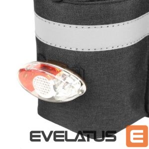 The elastic webbing on the outside of the bag is the perfect place for clothes that may require quick access. An additional pocket with a flap and a special place for a water bottle ensure that everything you need is at hand. The possibility of attaching a rear light is another plus that increases your safety on the road.