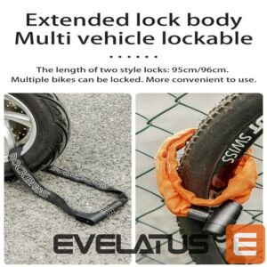 The chain, almost 1 meter long, allows optimal adjustment to various bicycle securing scenarios, offering you the freedom and certainty that your bike will remain where you left it.