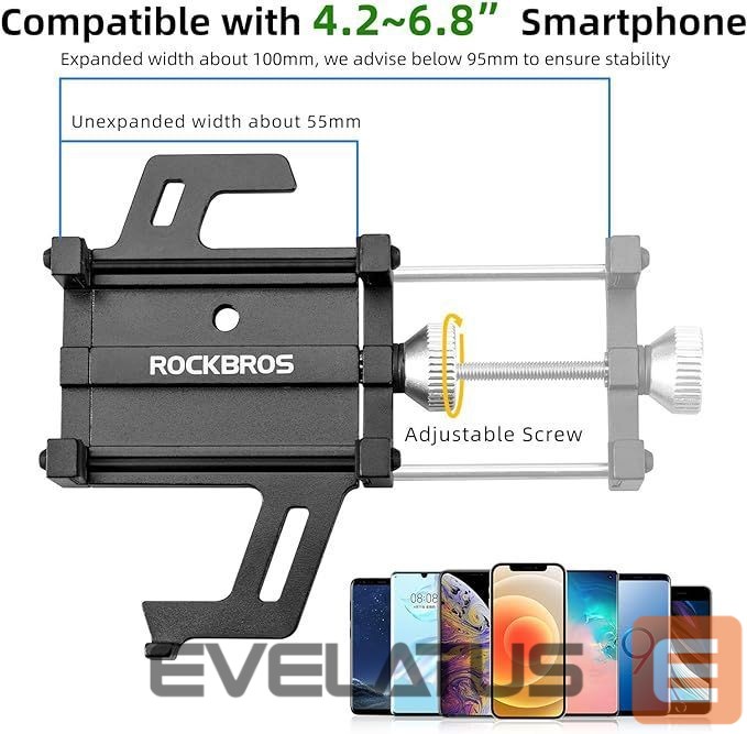 Forget about searching for the perfect bike phone holder. The Rockbros 699-BK Bicycle Holder, made of durable aluminum alloy, offers not only solidity, but also universal installation. Thanks to the adjustable arm span from 55 to 100 mm, it fits a wide range of phone models. Universal installation on handlebars with a diameter of 22 to 31.8 mm makes it compatible with most bicycles. All this in an elegant black finish.