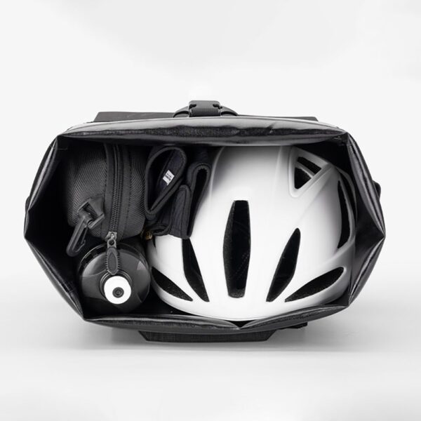 Discover a new dimension of comfort while cycling with the Rockbros bike bag with backpack function and helmet attachment. This innovative solution for lovers of long-distance routes and daily commutes, combining spaciousness, waterproofness and versatility of use. With a capacity of 13.5-18 liters, you can easily fit all your essential equipment, and the roll-up closure system allows you to adjust the volume to current needs. Built-in shoulder straps allow you to quickly transform the bag into a practical backpack, making it easy to transport off the bike. The construction made with seamless welding technology and internal gluing guarantee complete protection against rain. Additional features such as a rear light attachment, reflective logo, buckle with whistle or helmet holder make it an excellent choice for demanding users.