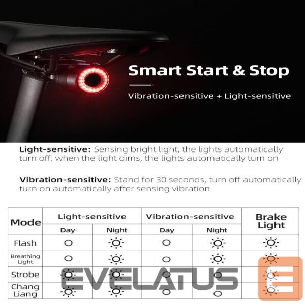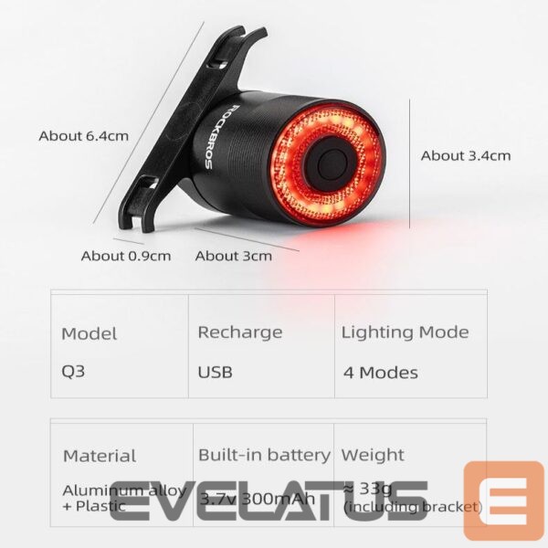 The most important advantages of the Rockbros Q3 rear bike light with intelligent stop system – black: