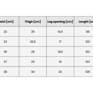 | Size | 1) External length (cm) | 2) Inner length (cm) | 3) Waist circumference (cm) | 4) Thigh circumference (cm) | 5) Calf circumference (cm) |