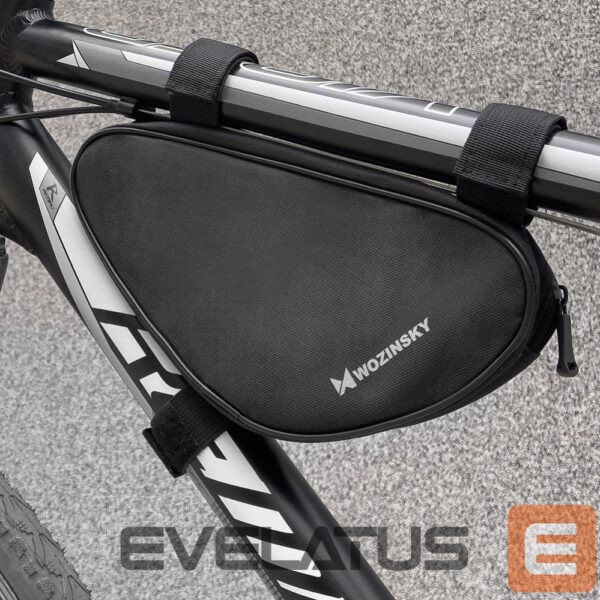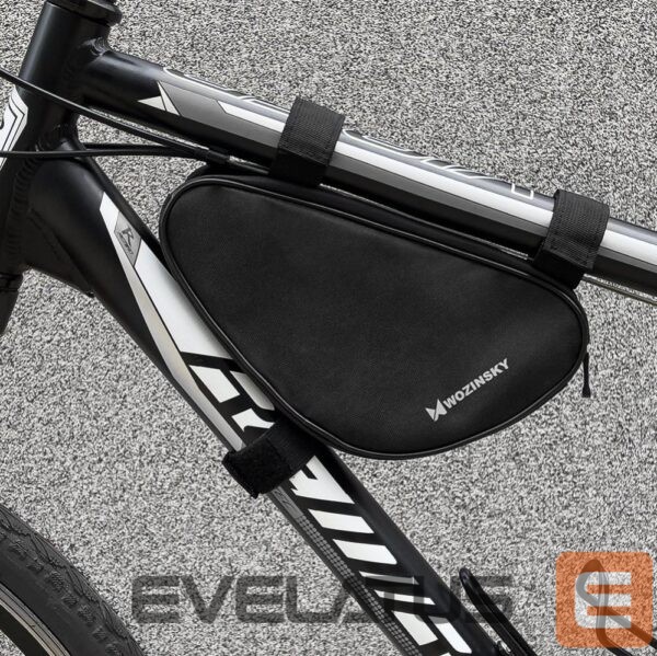 Discover a triangular bicycle frame bag that's a great solution for both city roads and forest trails . The Wozinsky WBB11BK is an incredibly lightweight frame bag that adds almost no weight to your bike while riding . Its minimalist design and color palette make it a perfect match for many bike models . A sturdy zipper protects your belongings from dirt, falling out, and sun damage .