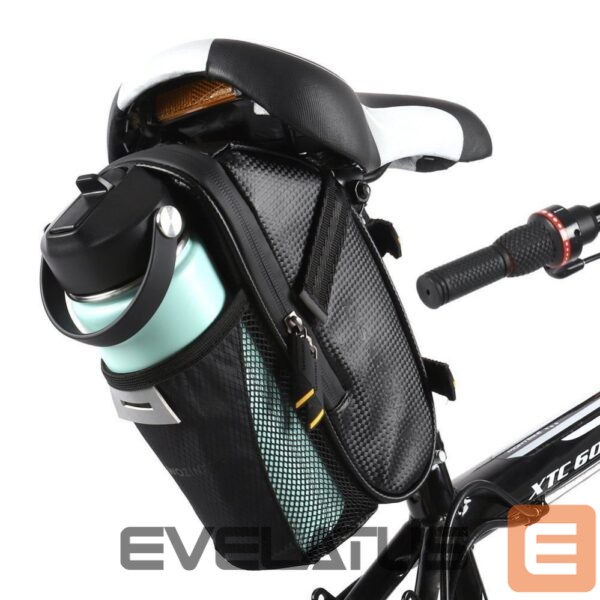 - It holds all your essentials, including a water bottle . The saddle bag has a capacity of 1.5 liters.