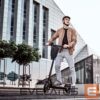 Torba na kierownicę hulajnogi Wozinsky WSB1BK zaprezentowana przez modelkę na hulajnodze miejskiej