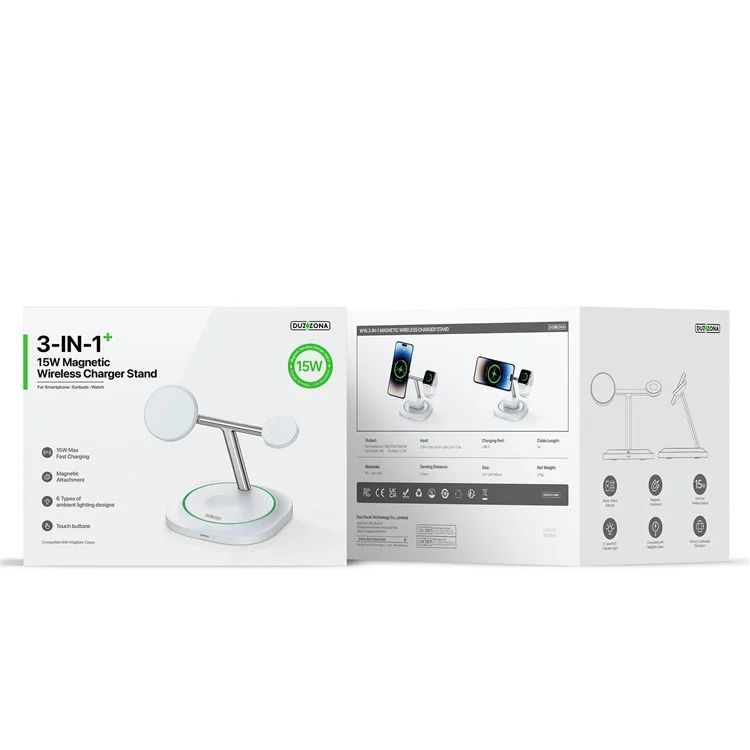 Juhtmeta laadija Duzzona W16 15W 3-in-1 Magnetic Wireless Charger White