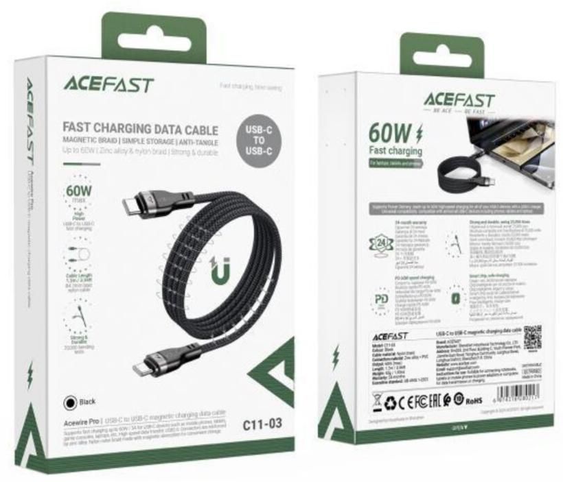 Kaabel Acefast 3in1 Cable Acefast C11-03 USB-C – USB-C 480Mb/s 100W 1.2m Black
