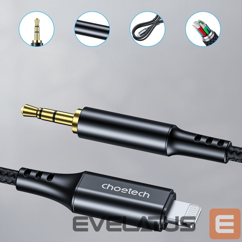 Choetech AUX007 cable with Lightning connectors and 3.5 mm mini jack, 2 m long – black