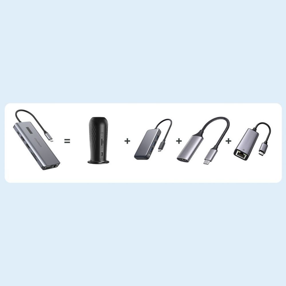 Kaabel Choetech Choetech multifunctional HUB with display 12in1 USB-C to USB-C / USB-A / HDMI / VGA / AUX / SD / TF gray (HUB-M26)