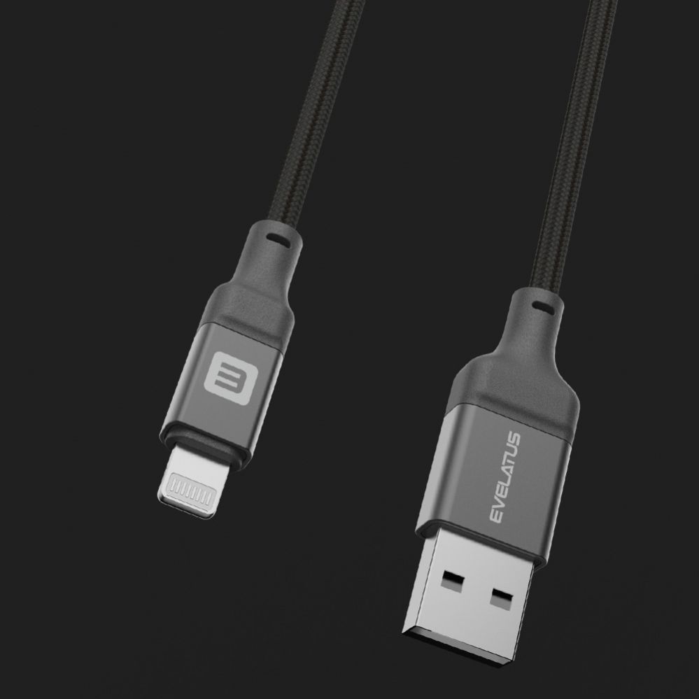 Kaabel Evelatus Evelatus USB A to Lightning, Cable 1.2M ( MFI11CL )Aluminum housing braiding Black