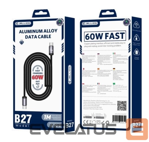 Kaabel Jellico B27 Woven Cotton Universal USB-C to USB-C Data & Fast PD 60W Charger Cable 1m Black
