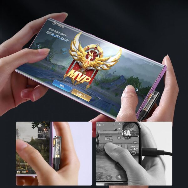 - A great choice for gamers who want to charge their phone while playing . This is an angled USB C cable, i.e. one in which the plug has been rotated 90 degrees. This design makes using the phone much more enjoyable while simultaneously powering its battery