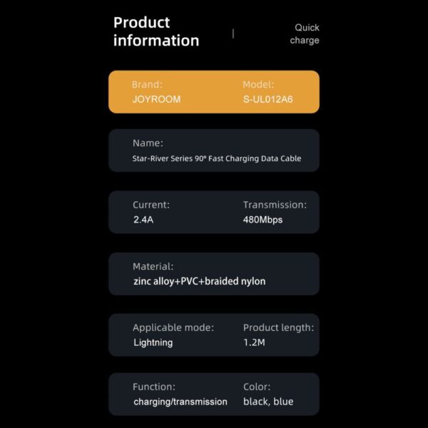 - You don't have to worry about the plugs breaking or corroding . The Joyroom S-UL012A6 cable has gold-plated connectors.