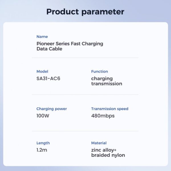 Need reliable power for your tablet and phone? The Joyroom Pioneer Series USB-A to USB-C cable is the answer to your needs. With 100W of power, you can quickly charge your device in no time. It's a one-stop solution for all your charging needs.