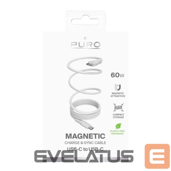 Kaabel Puro Elektrik Puro Magnetic USB-C – USB-C 60W USB 3.2 (20 Gbps) 1m Magnetic Cable – White