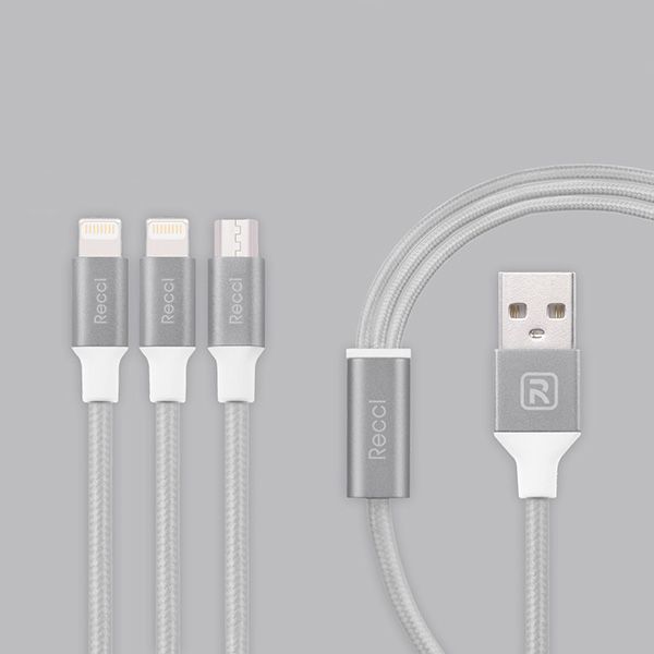 Kaabel Recci Universal Delicate RCS-H120 3 in 1 Micro USB + 2 x Lightning Fast Charging 1,2 m Grey