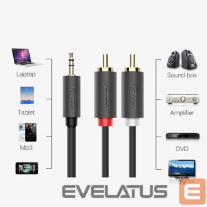 Ugreen AV102 10512 cable with 3.5 mm mini jack (male) / 2RCA (male) connectors, 3 m long – black